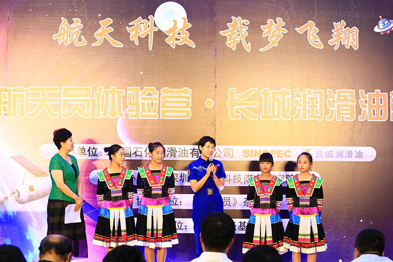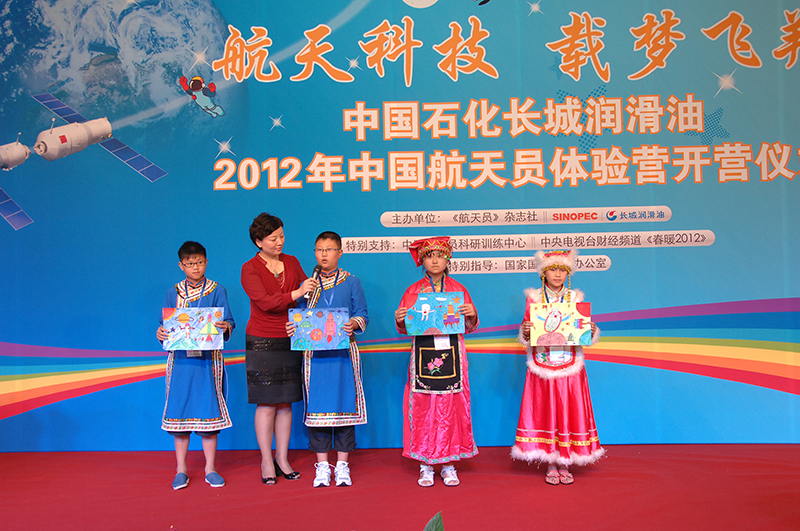 2012年7月19日, “中國石化長城潤滑油中國航天員體驗營”在北京航天城開營。作為國內最具影響力的航天科普活動之一,將目光聚焦到留守兒童的航天夢想上。來自四川和貴州等地的40多位留守兒童齊聚北京,與航天員叔叔一起,度過美好的時光,實現了難忘的圓夢之旅。