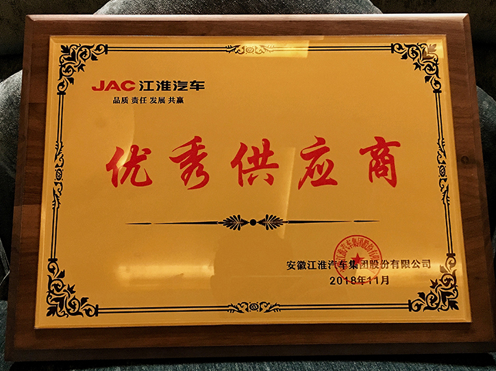 2018年11月2日公司獲得江淮汽車優秀供應商