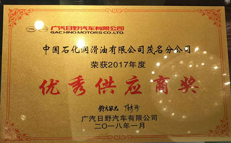 2018年長(zhǎng)城潤(rùn)滑油蟬聯(lián)廣汽日野年度優(yōu)秀供應(yīng)商