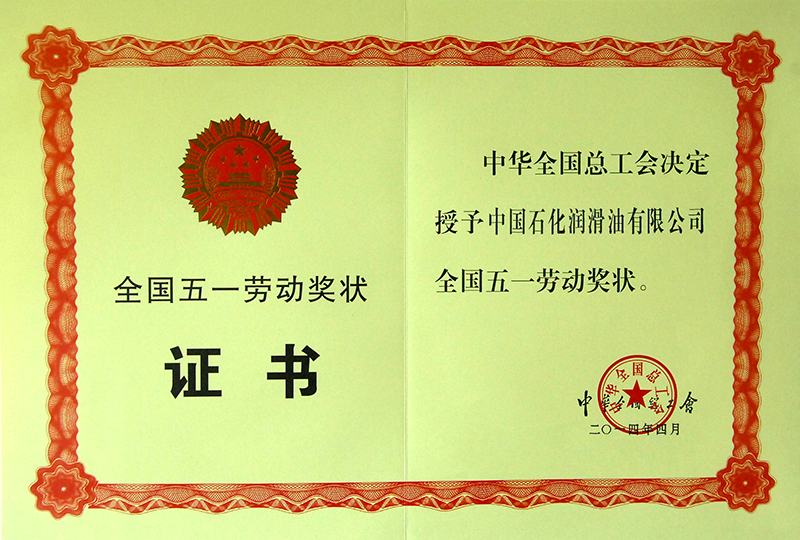 2014年全國五一勞動獎狀