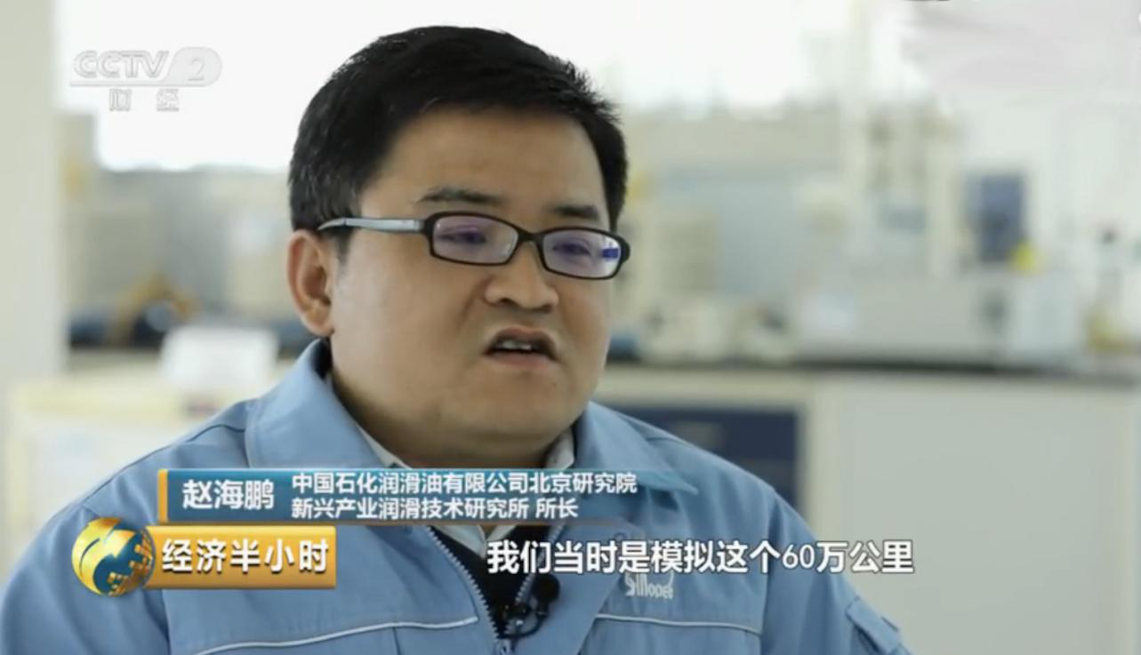 (圖:長城潤滑油北京研究院新興產(chǎn)業(yè)潤滑技術(shù)研究院所長趙海鵬,接受央視采訪講述高鐵潤滑油開發(fā)背后的故事)