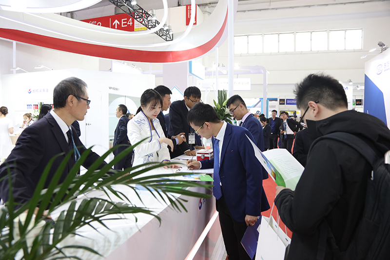 (圖:中國石化長城潤滑油風電潤滑產品展示,現場觀眾正在展臺咨詢)