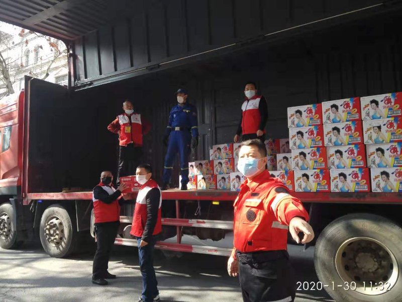 1月26日,大年初二的凌晨4點,荊門市深圳大道金潔醫(yī)療服務(wù)的倉庫旁,停著幾輛東風(fēng)皮卡,一群戴著口罩,穿著紅十字會志愿者服裝的人們正緊張有序忙上忙下的往車?yán)锇徇\醫(yī)療物資。陳俊峰和老戰(zhàn)友早早的來到這里,按要求做好個人防護措施后,以飽滿的熱情投入到了防護物資的搬運工作中:一箱箱急需的醫(yī)療口罩,一桶桶一百多斤的消毒液,還有一提提測溫儀、護目鏡……后背衣服濕了又干,干了又濕,每個人分工合作,有條不紊。從大年初二到正月十四,從荊門城南的掇刀區(qū)到城北的東寶區(qū),從設(shè)卡檢查到機動車禁行,不能開私家車了,就騎自行車,或者干脆走路步行去參加志愿服務(wù)。這是一幅幅安靜又熱鬧的場景,更是一場場生命與時間的賽跑!