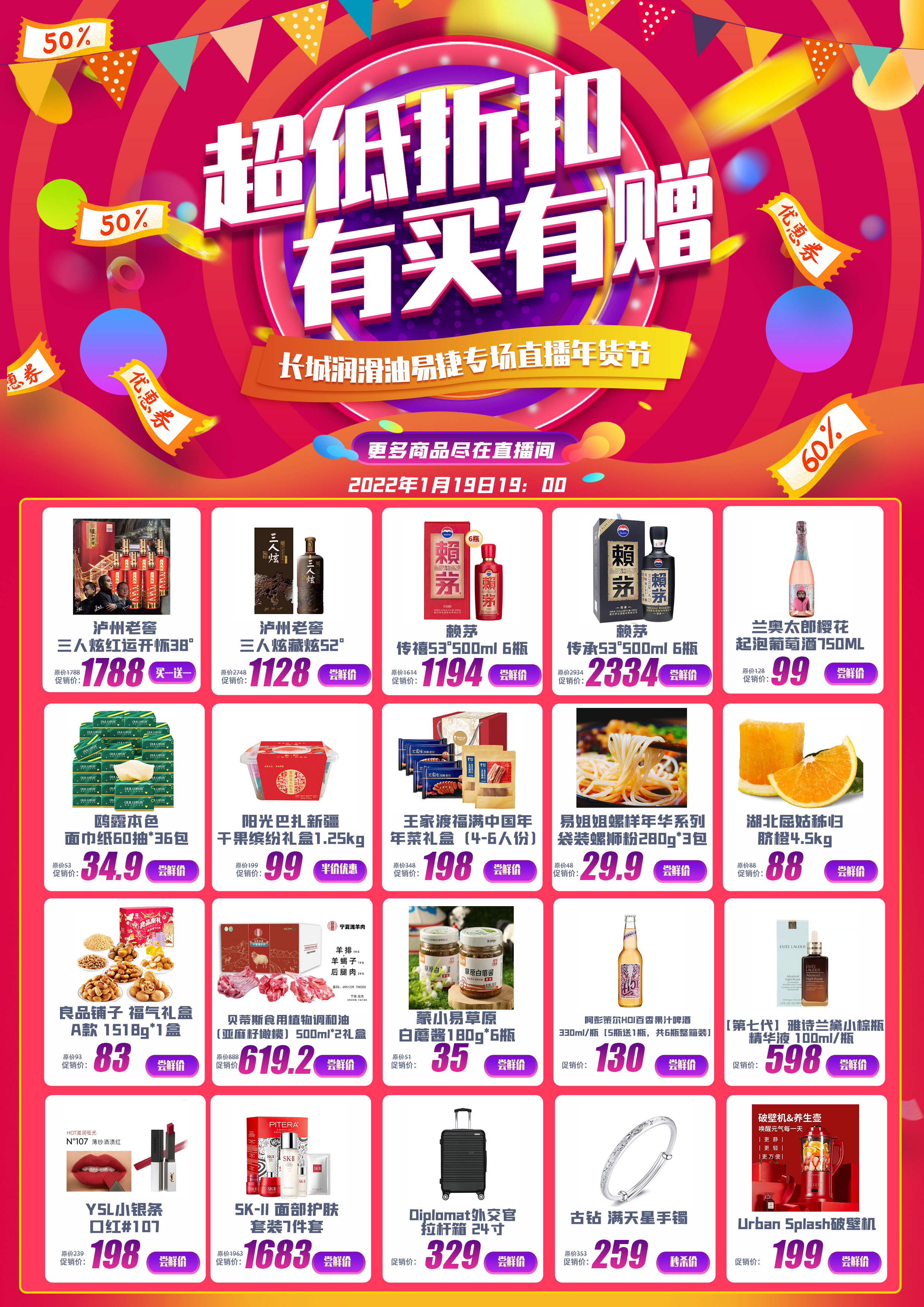 ? ? ? ?2022年1月19日晚19:00-21:00,加油中石化小程序直播,支持本次直播活動提供年貨商品的有廣西石油、貴州石油、新疆石油、內蒙古石油、易捷國際以及瀘州三人炫等7家供應商。直播活動共開展6輪抽獎,近10輪秒殺,看直播贏限量版冬奧紀念保溫杯。