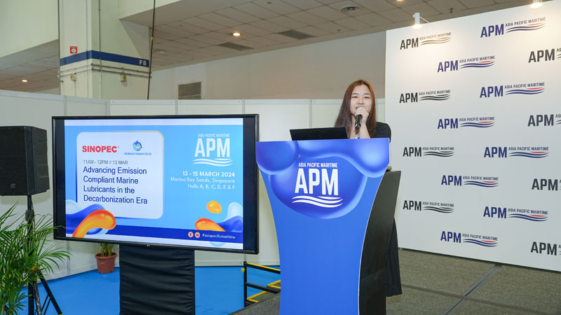 ??? 展會首日,潤滑油公司還舉辦了以“綠色環保”為主題的船舶潤滑油品及服務的推介會,中石化東南亞(澳洲)代表處副總代表雷麗華女士致辭祝賀,介紹了中國石化在服務航運業低碳發展方面取得的成效,燃料油公司也一同參加推介活動,向客戶介紹了中國石化燃料油全球發展全球供應情況,展示中國石化服務航運業的整體實力。