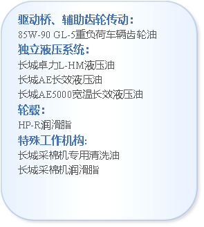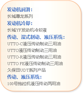 UTTO系列液壓傳動制動三用油,具有良好的低溫流動性能、抗磨性能、抗氧化性能及摩擦性能,可以延長換油周期,降低用油成本和停機時間,并有效降低濕式剎車的噪聲和震動。該產品適用于進口及國產農業機械的液壓系統、齒輪傳動系統和濕式驅動橋,以及工程機械(如裝載機、叉車等)的濕式驅動橋,真正實現了一油多用的優勢,全方位保障農業機械的順暢運轉。