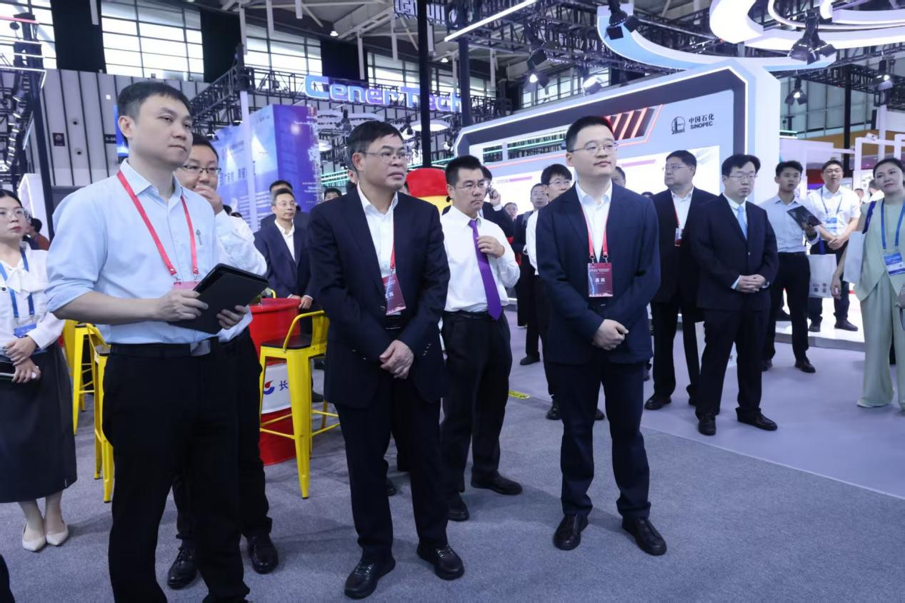 中國石化集團公司黨組成員、副總經理李永林(左二)視察長城潤滑油展臺