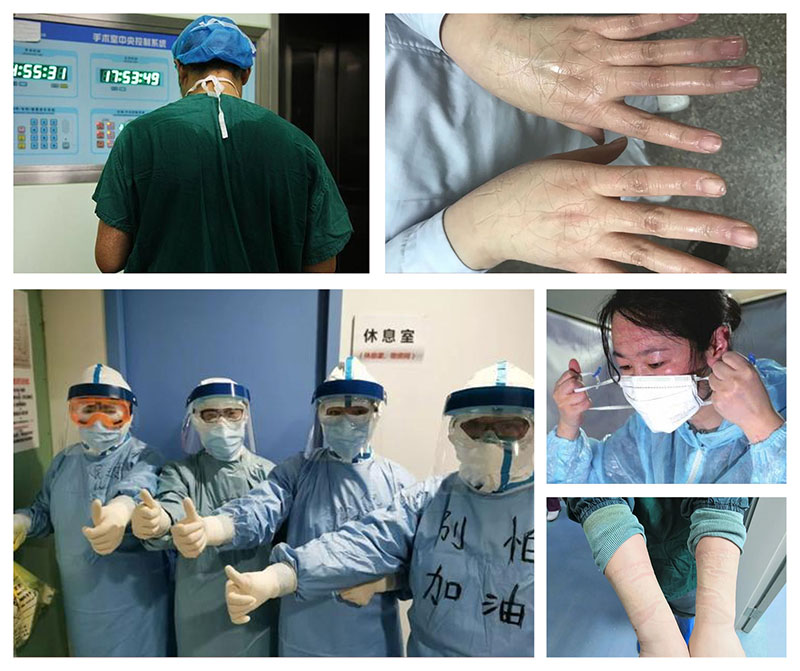 然而,隨著疫情戰(zhàn)線的拉長,看到醫(yī)護人員為節(jié)約時間、節(jié)約防護服不敢喝水吃東西時,看到他們因為防護手套密不透氣,汗液浸漬下的雙手被泡得脫皮時;看到他們的臉頰被口罩、護目鏡勒出深深的印痕時……我們不斷地問自己:“面對疫情,我們還能夠做些什么?能不能再多做一點,讓前方奮戰(zhàn)的英雄們更溫暖一點……”