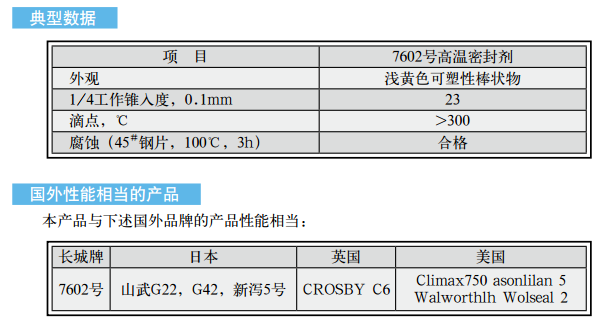 長(zhǎng)城牌7602號(hào)高溫密封劑是以無(wú)機(jī)稠化劑稠化合成油,并加入固體填料,按特定工藝精制而成。